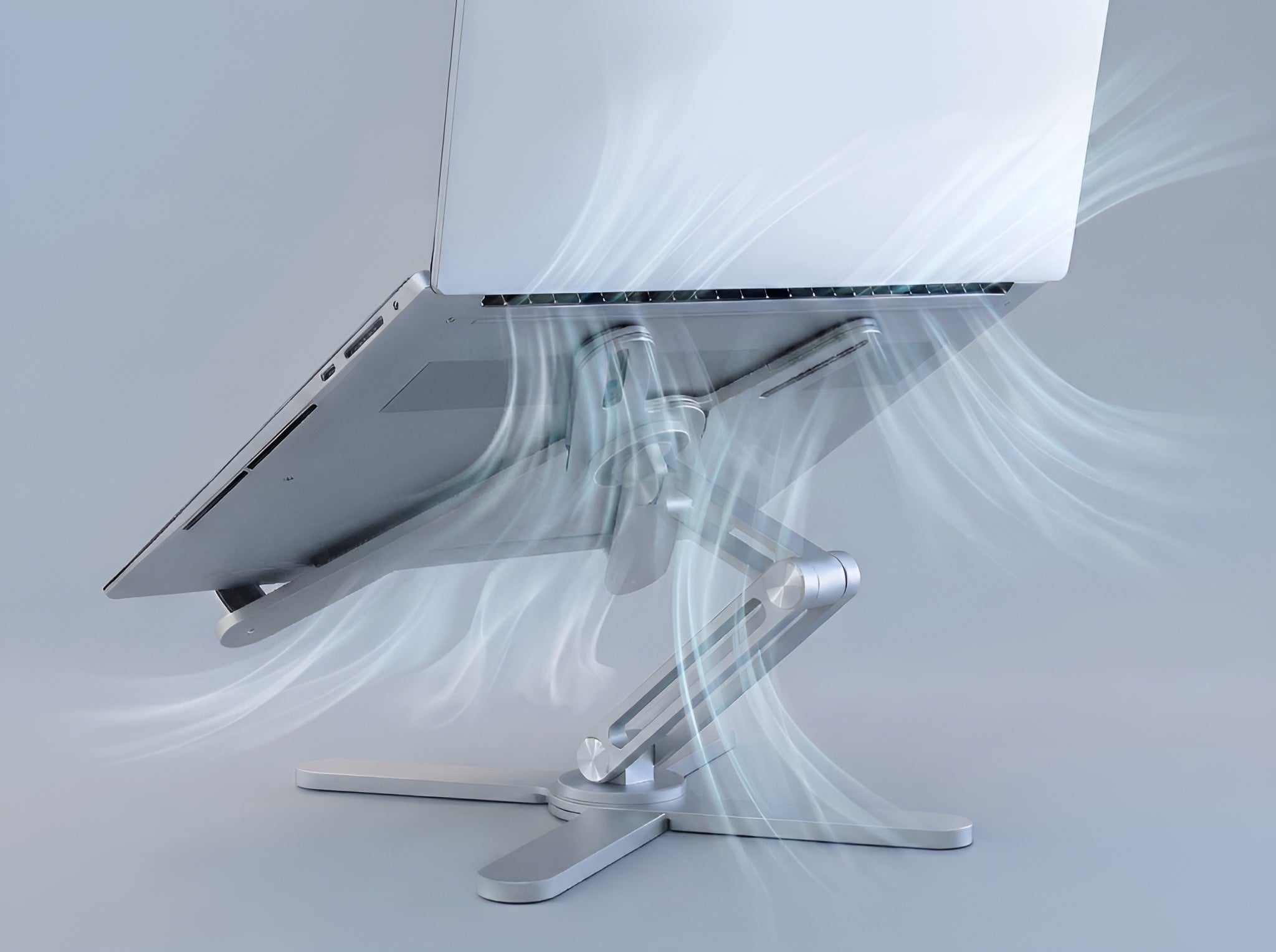 - Maximale airflow: Het open design houdt je laptop koel en stil.